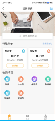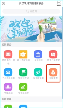 步骤三:通过新生账号激活的手机号和设置的密码登录学习通后选择首页,在上面选择WilliamHill体育迎新服务,然后选择迎新缴费