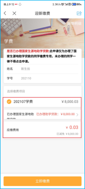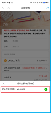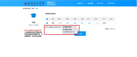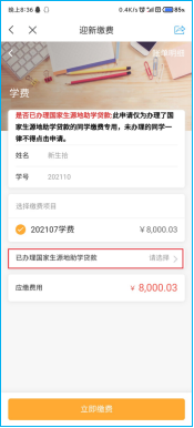 步骤二:勾选缴费项目(有助学贷款的学生可选择助学贷款抵扣选项)