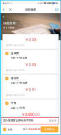 步骤六:在待缴账单>查看全部中可以选择全部缴费(办理助学贷款的学生可选择助学贷款抵扣选项)